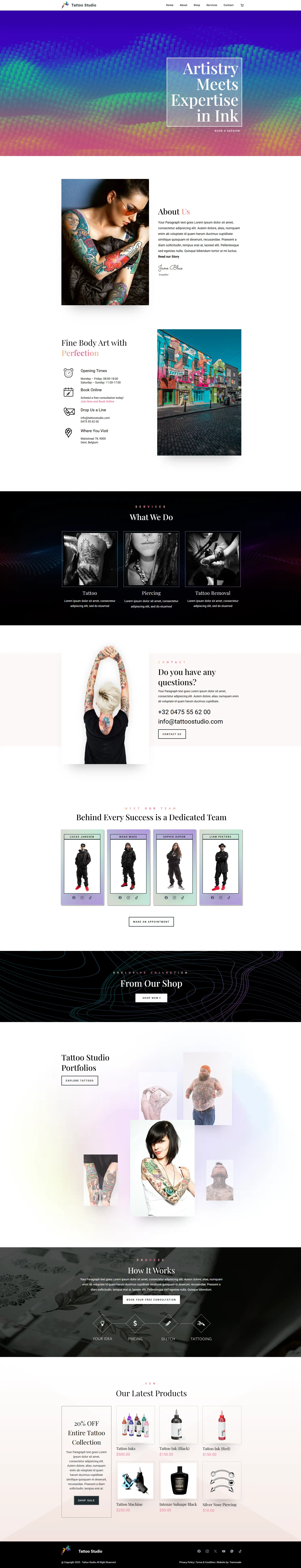 This project was part of a snapshot system developed to help tattoo professionals launch their online presence quickly and with minimal effort. The landing page serves as the first touchpoint in a fully pre-built digital toolkit, tailored specifically to the needs of artists who want to automate bookings, client communication, and brand visibility without worrying about coding or setup.